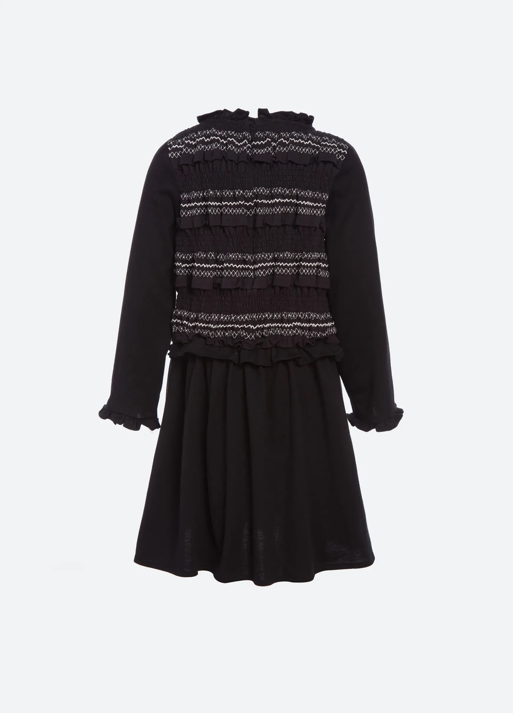 The Mable cambric kids long sleeve dress features a smocked bodice and ruffle detailing. Part of our mommy & me coordinating collection.