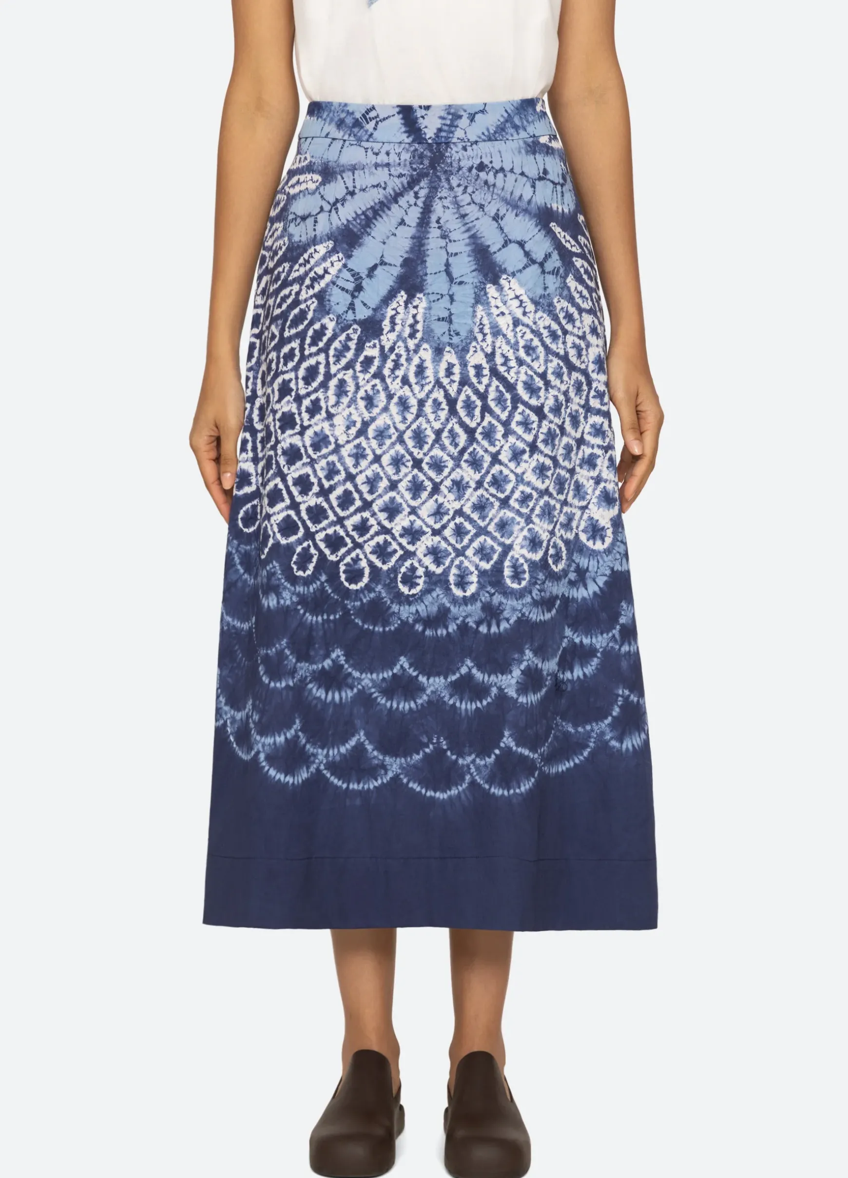 The Blythe tie dye print skirt features an a-line silhouette and abstract design.