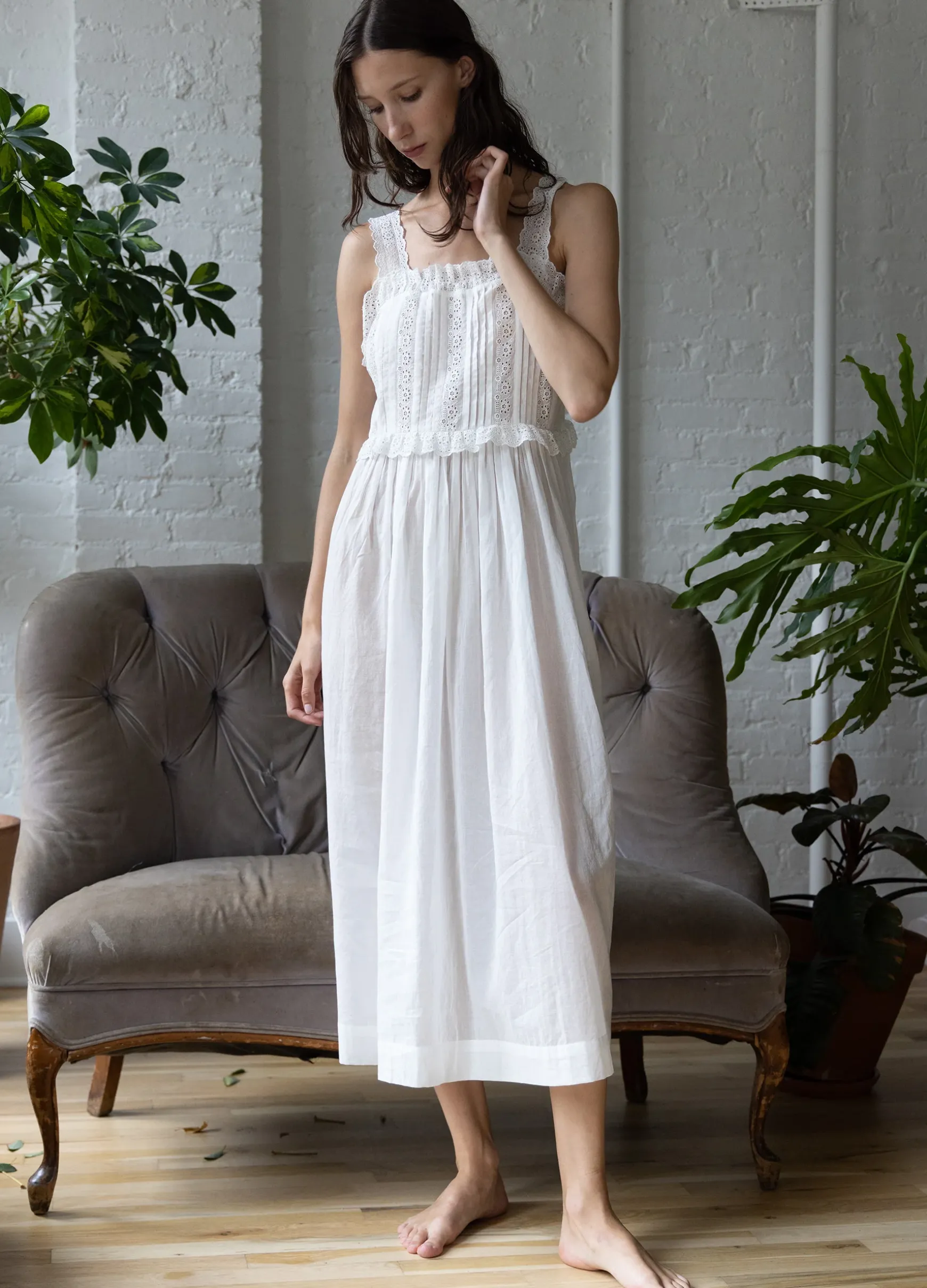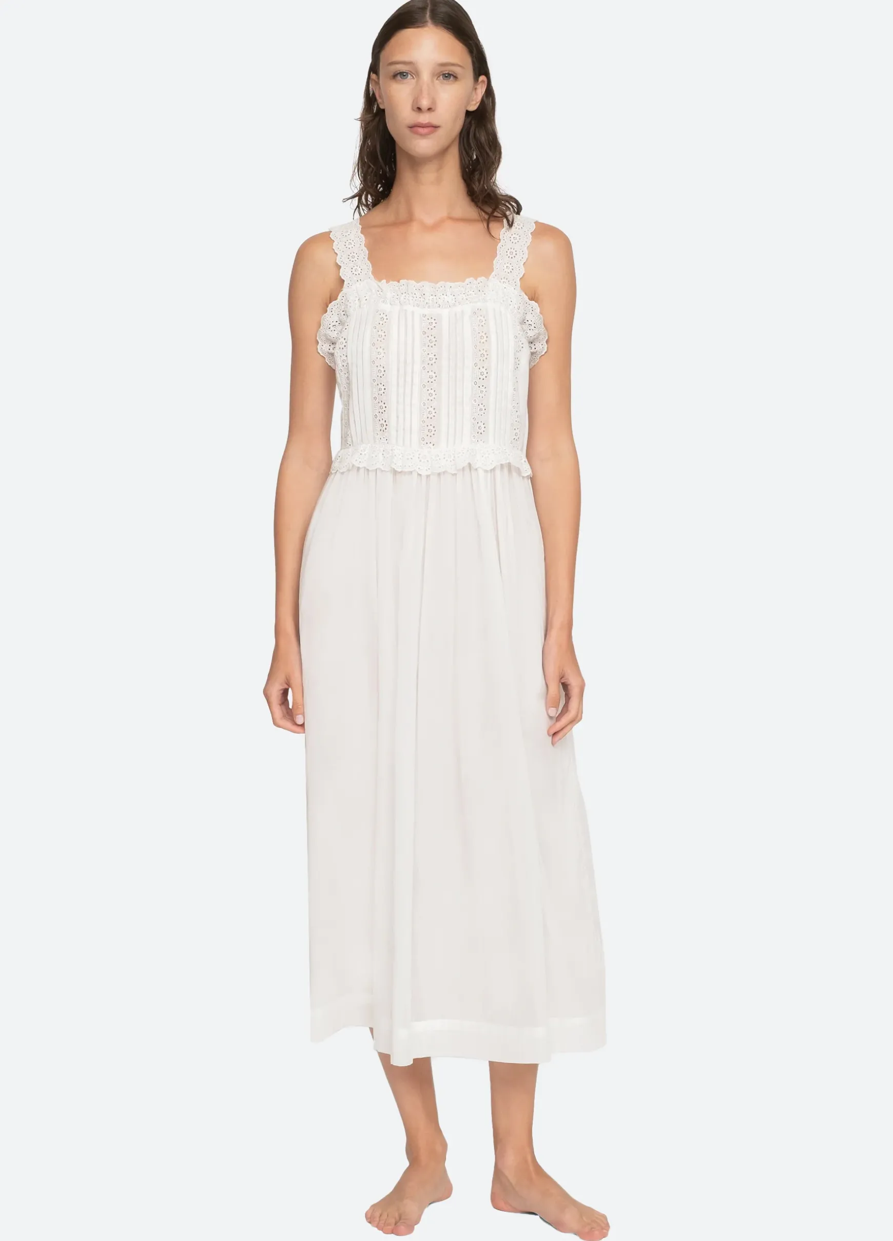 The Elysse embroidered midi nightgown features eyelet trim detailing and pleated bodice. Designed for an easy, relaxed fit.