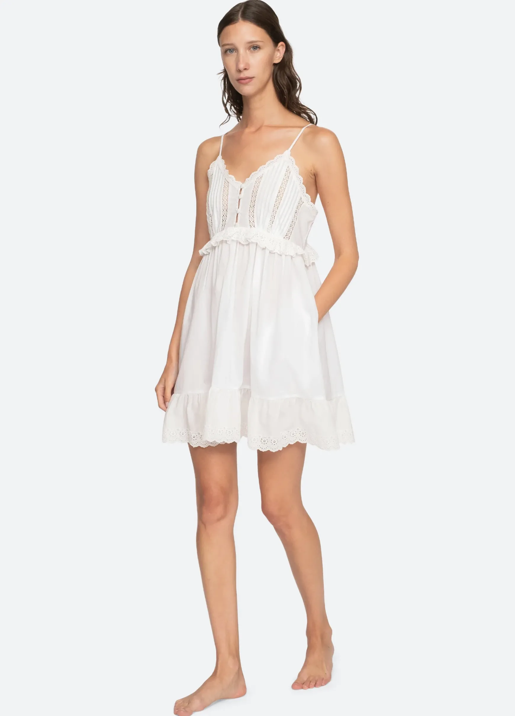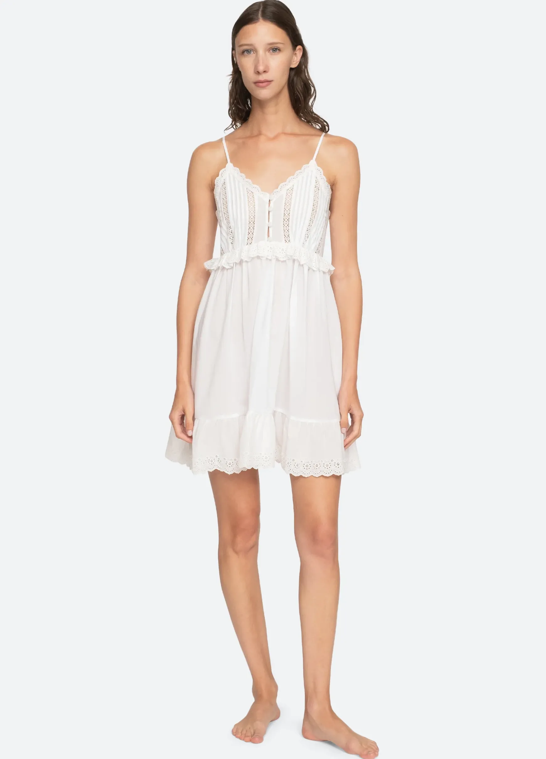 The Elysse embroidered nightgown features eyelet trim detailing and a pleated bodice. Designed for an easy, relaxed fit.