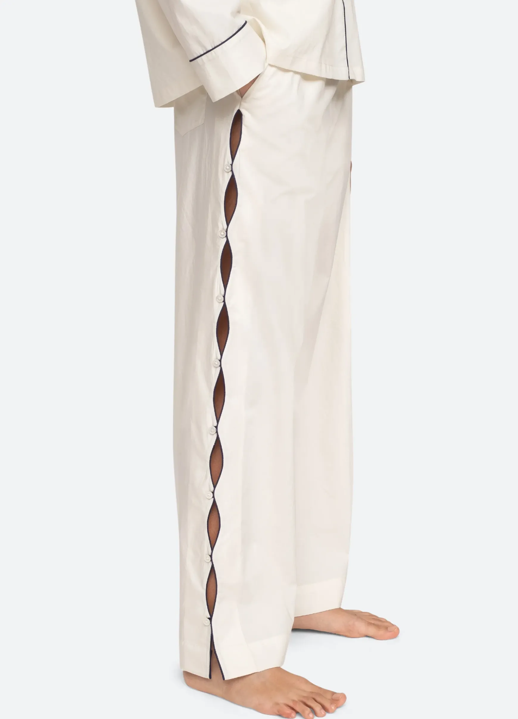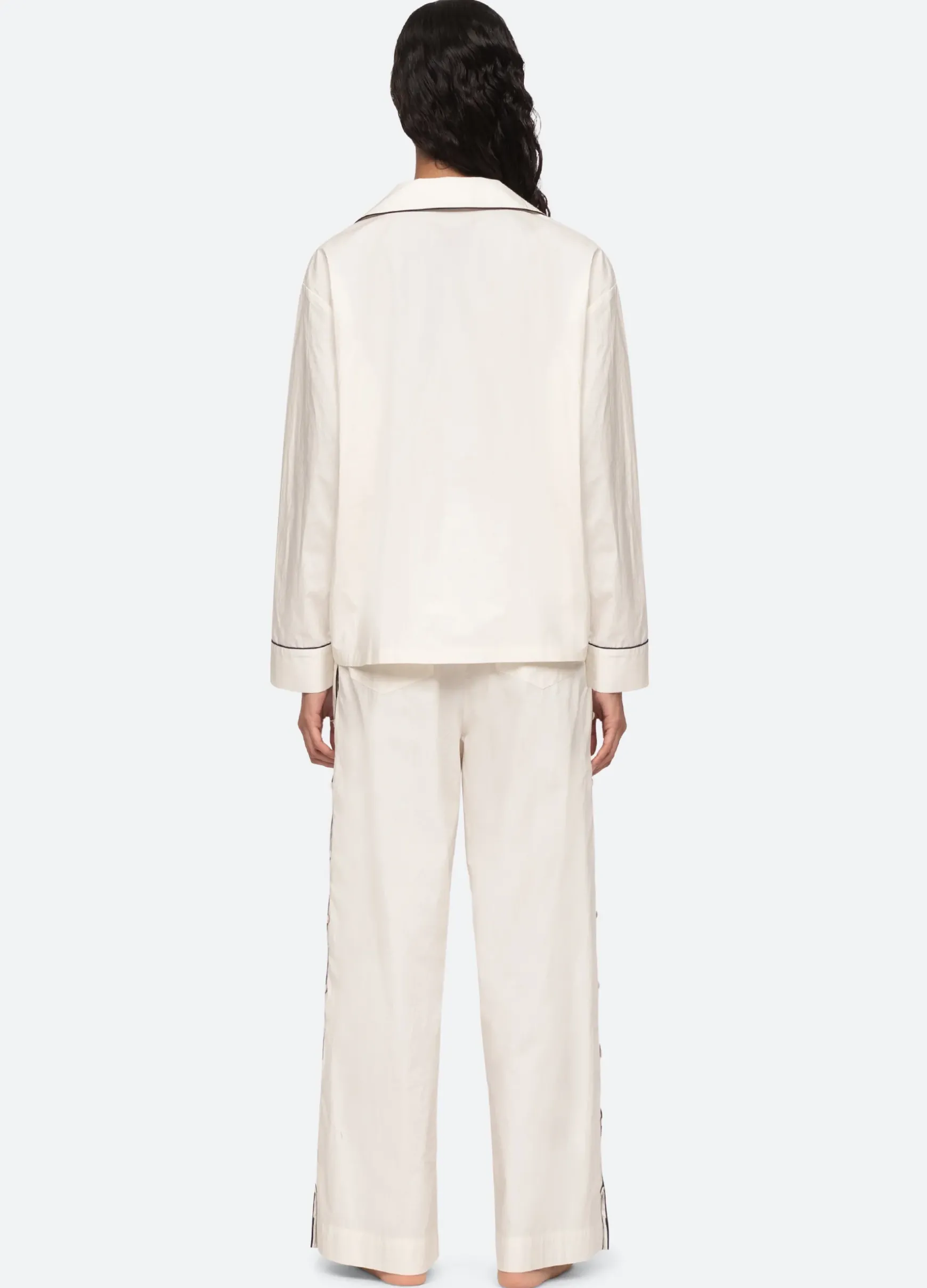 The Vesta binding long pajama set features embroidered ‘SEA’ logo and cut-out detailing.