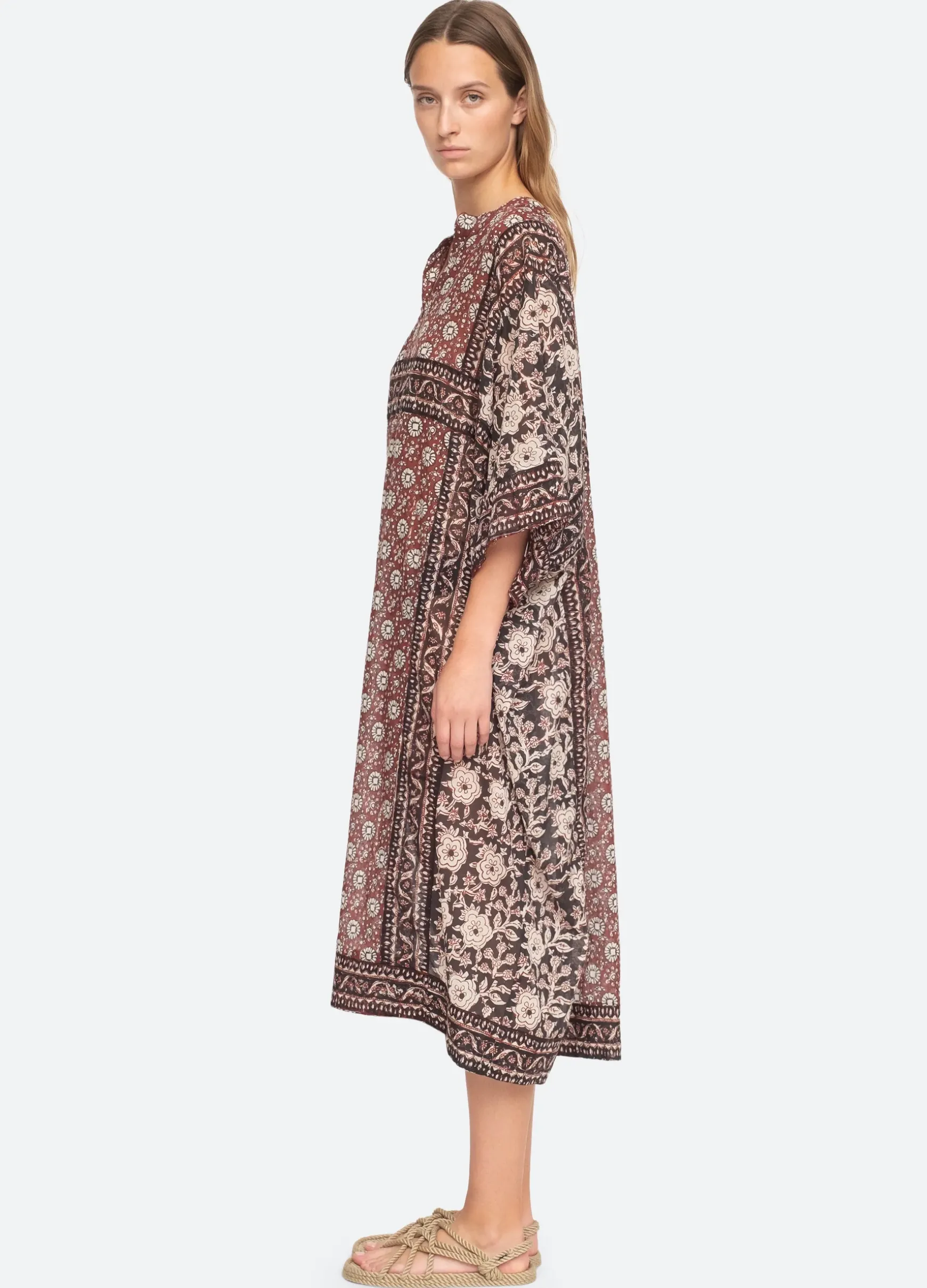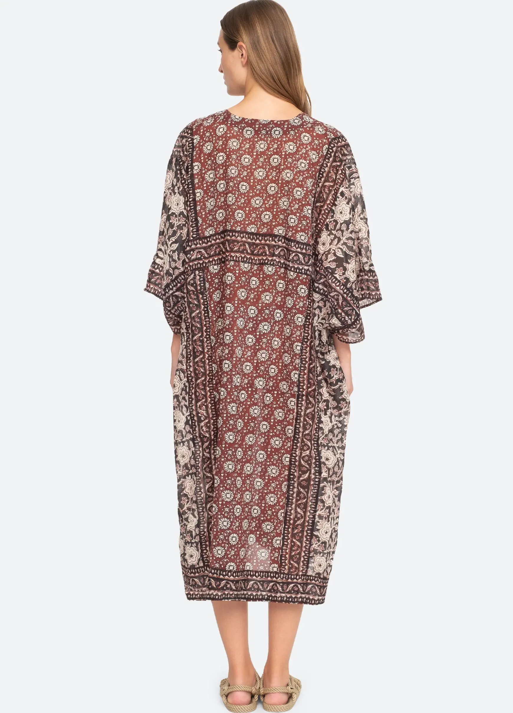 The Danae floral print caftan features a split v-neckline and flowing sleeves. Designed for an easy, relaxed fit.