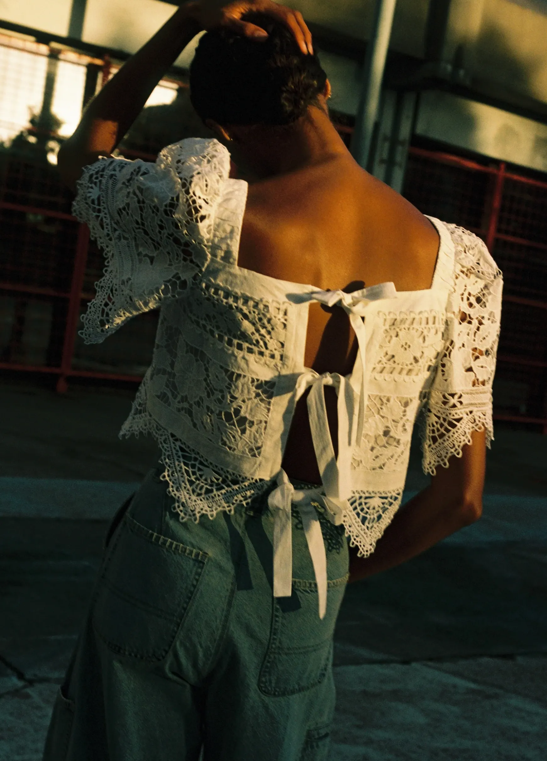 The Joah embroidered lace short sleeve top features delicate lace detailing throughout, square neckline and tie fastening at back. Designed for an easy, relaxed fit.