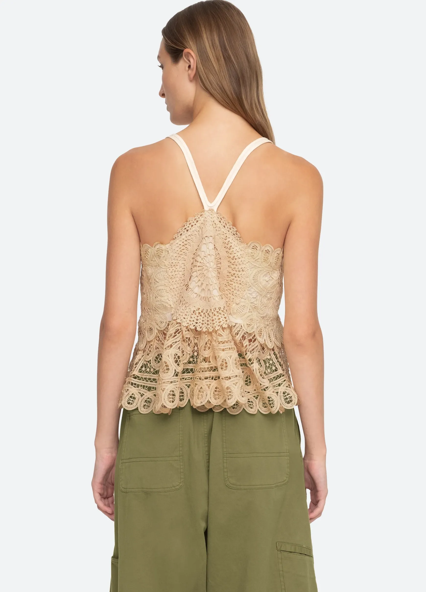 The Anastasia romantic battenburg top features intricate lace battenburg detailing and racerback straps.