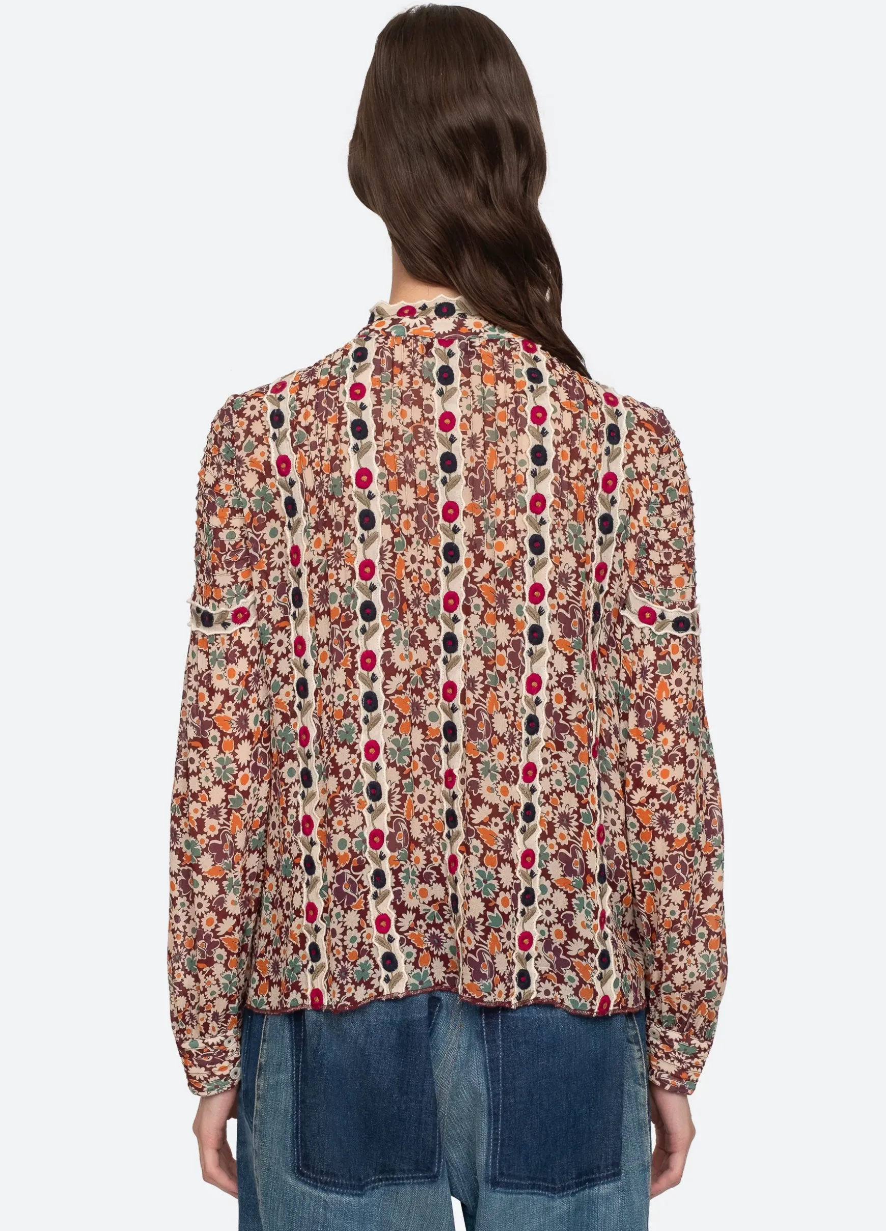The Fernande long sleeve top features a multi colored floral print with trim detailing.