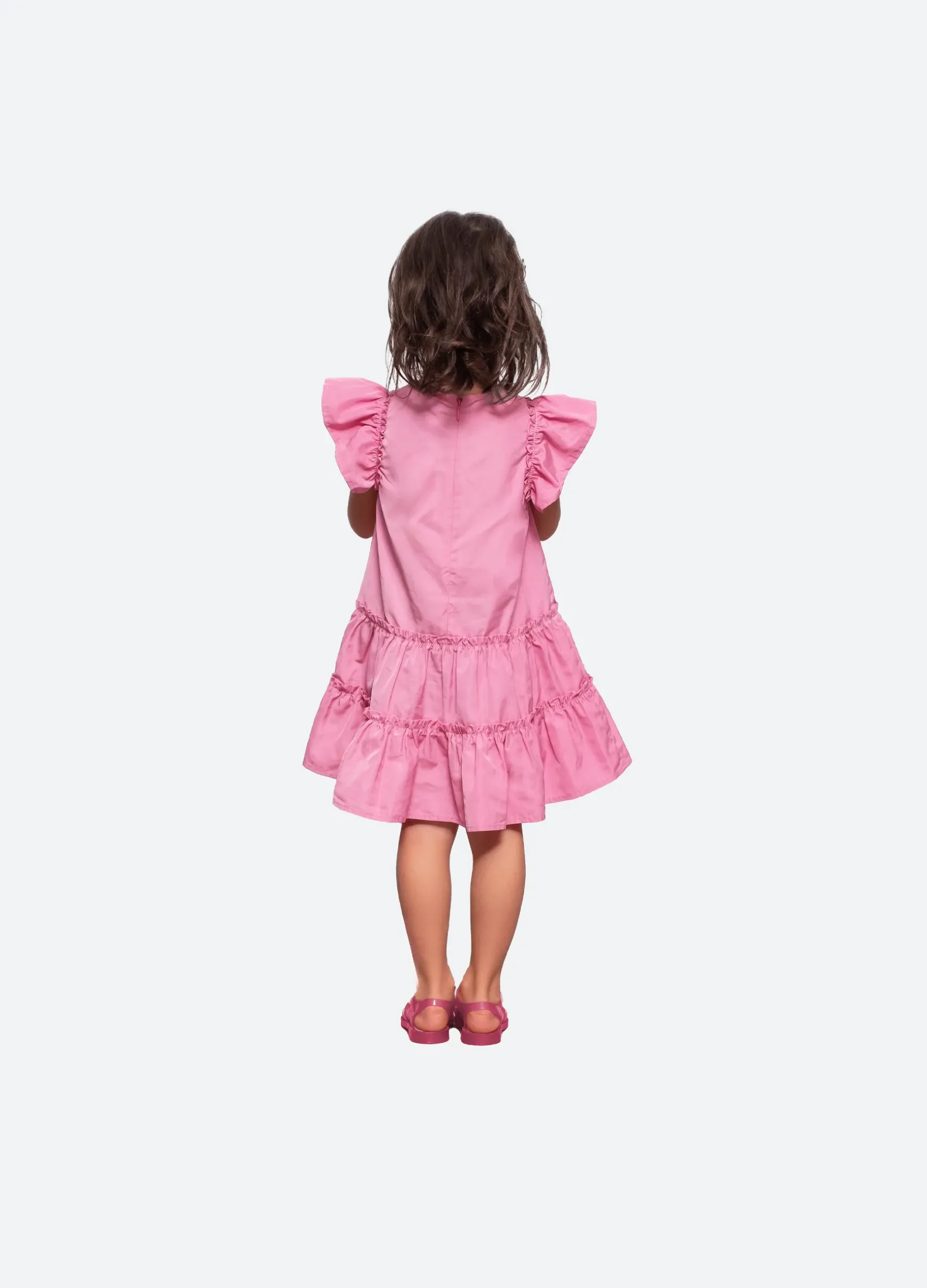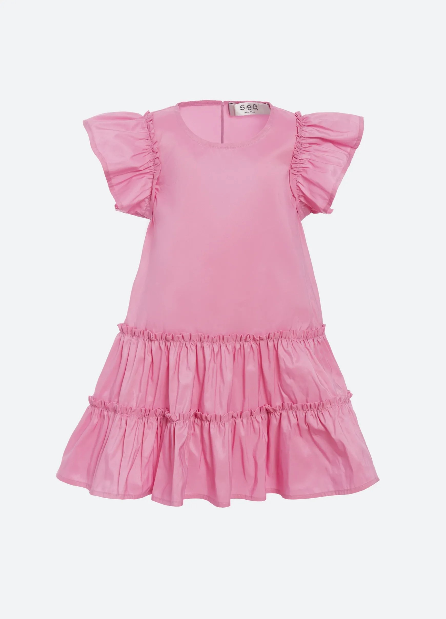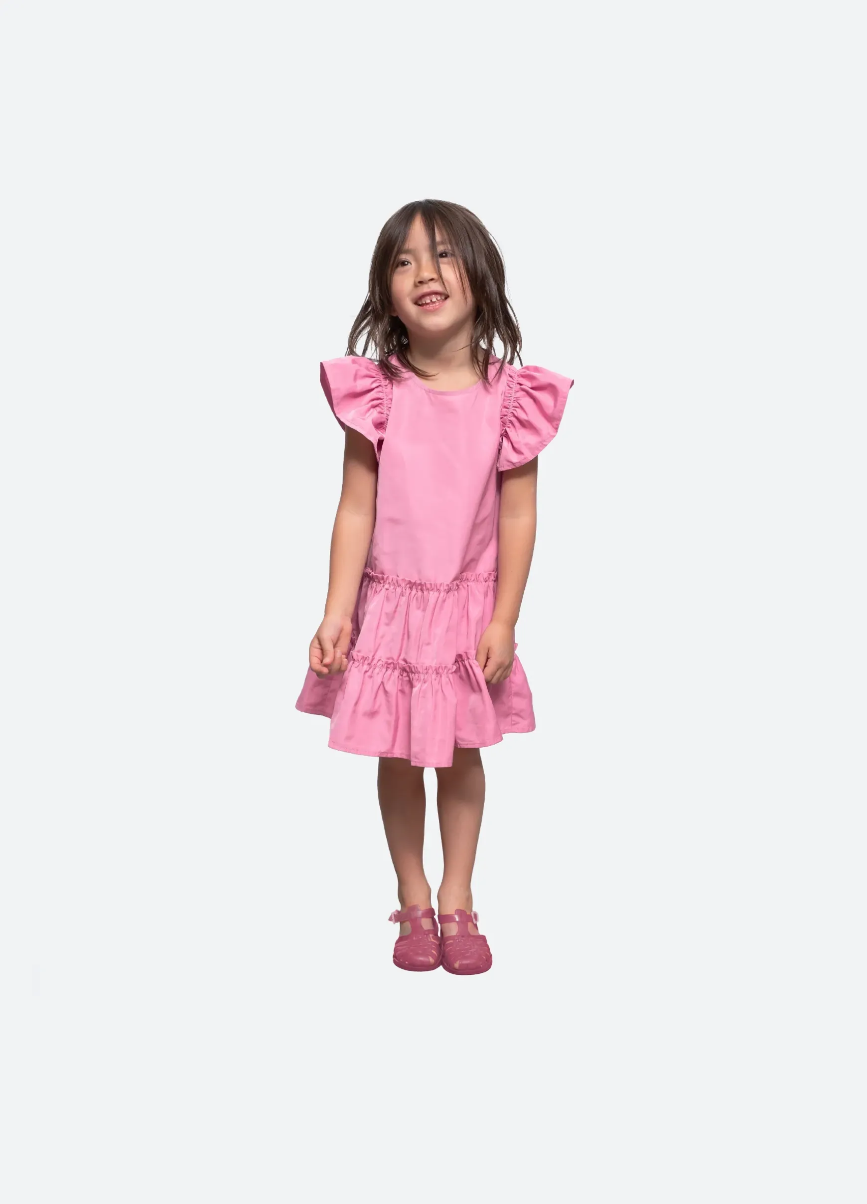 The Diana taffeta kids dress features flutter sleeves and a tiered ruffle skirt. Part of our mommy & me coordinating collection.