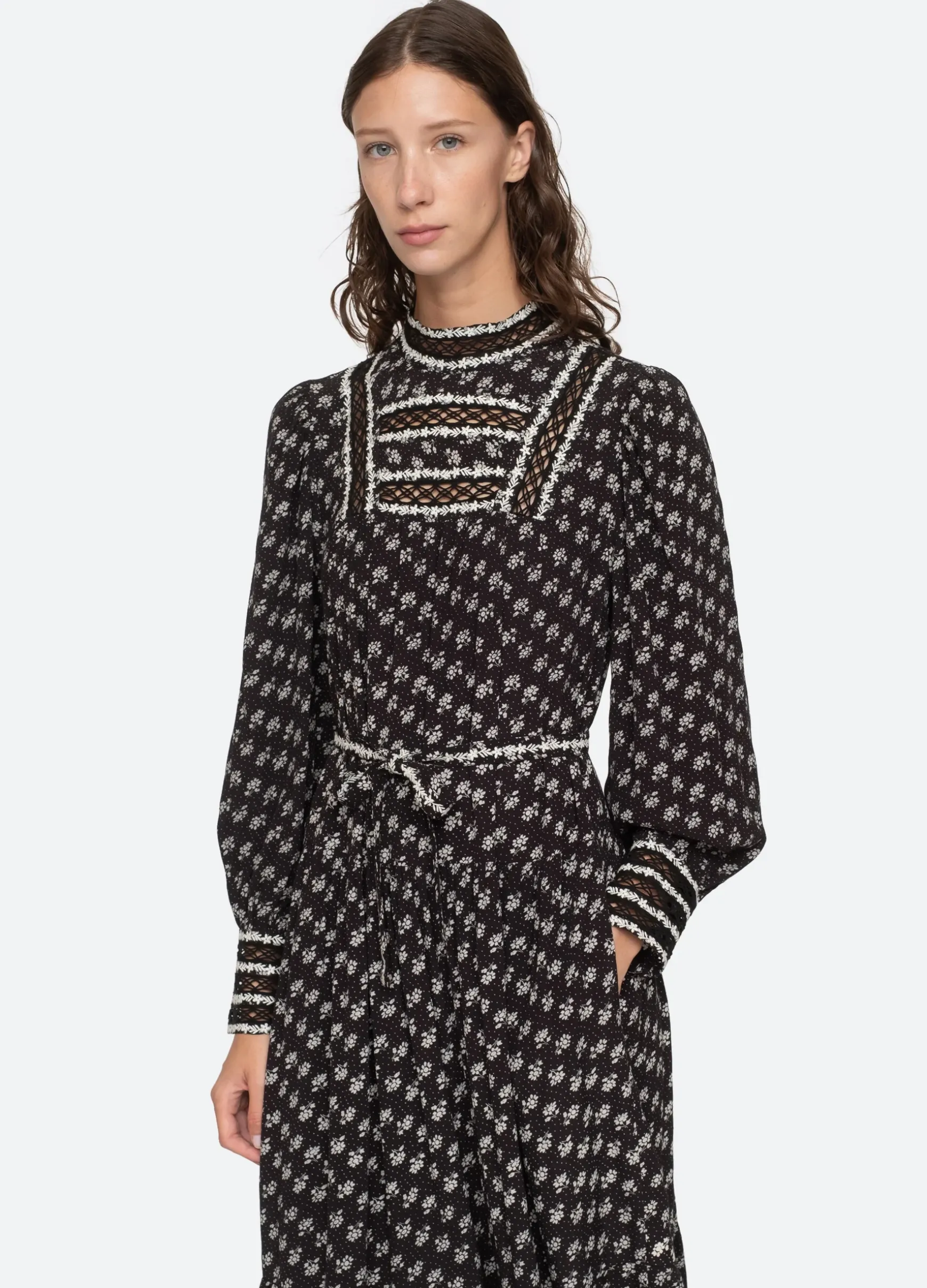 The Ada floral print long sleeve dress features embroidered detailing and lace insets.