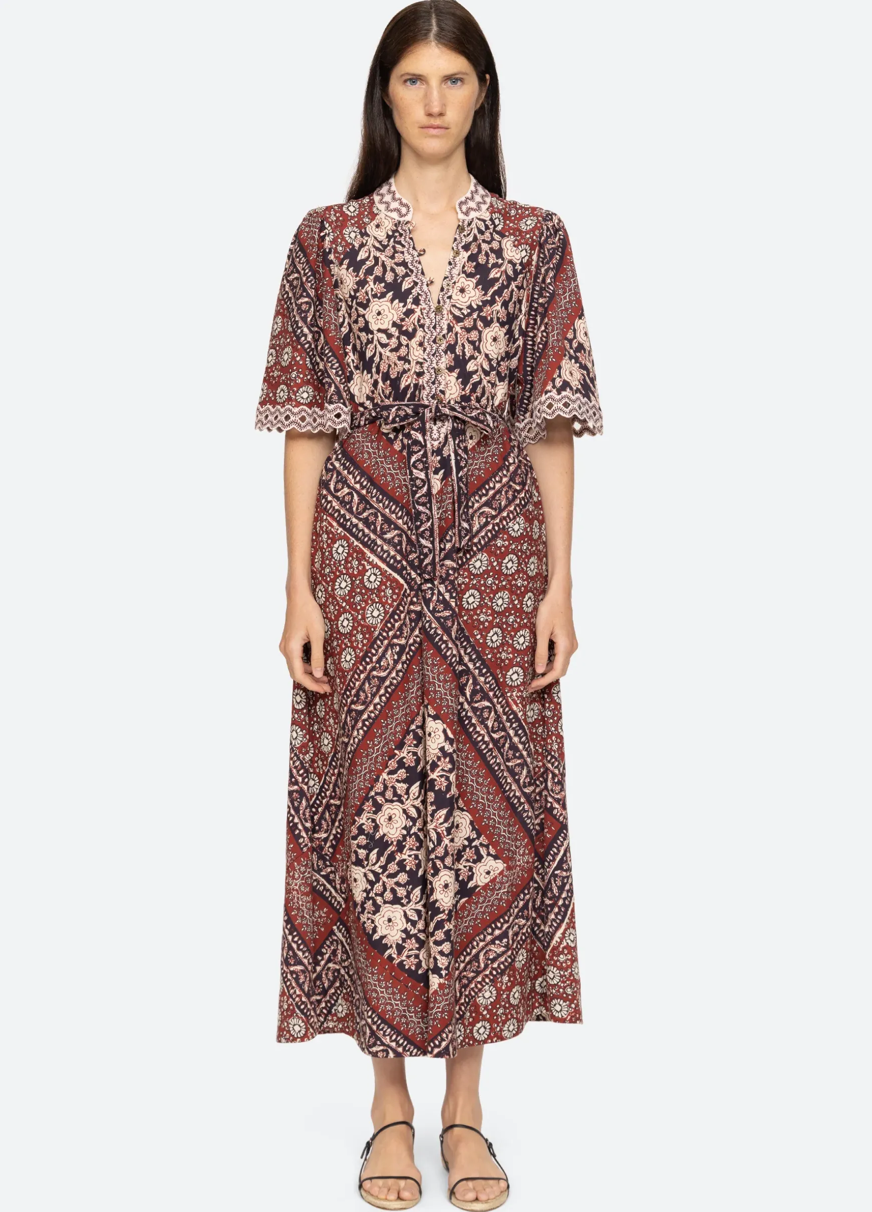 The Danae floral print short sleeve dress features voluminous sleeves with cutout accents, ric-rac trim detailing and removable belt. Designed for an easy, relaxed fit.