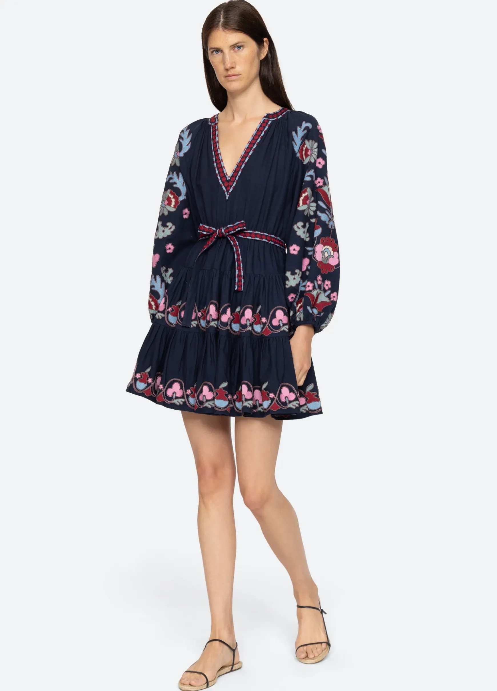The Eclisse floral embroidered tunic dress features long puff sleeves, deep v-neck line, removable belt and mini silhouette. Designed for an easy, relaxed fit.