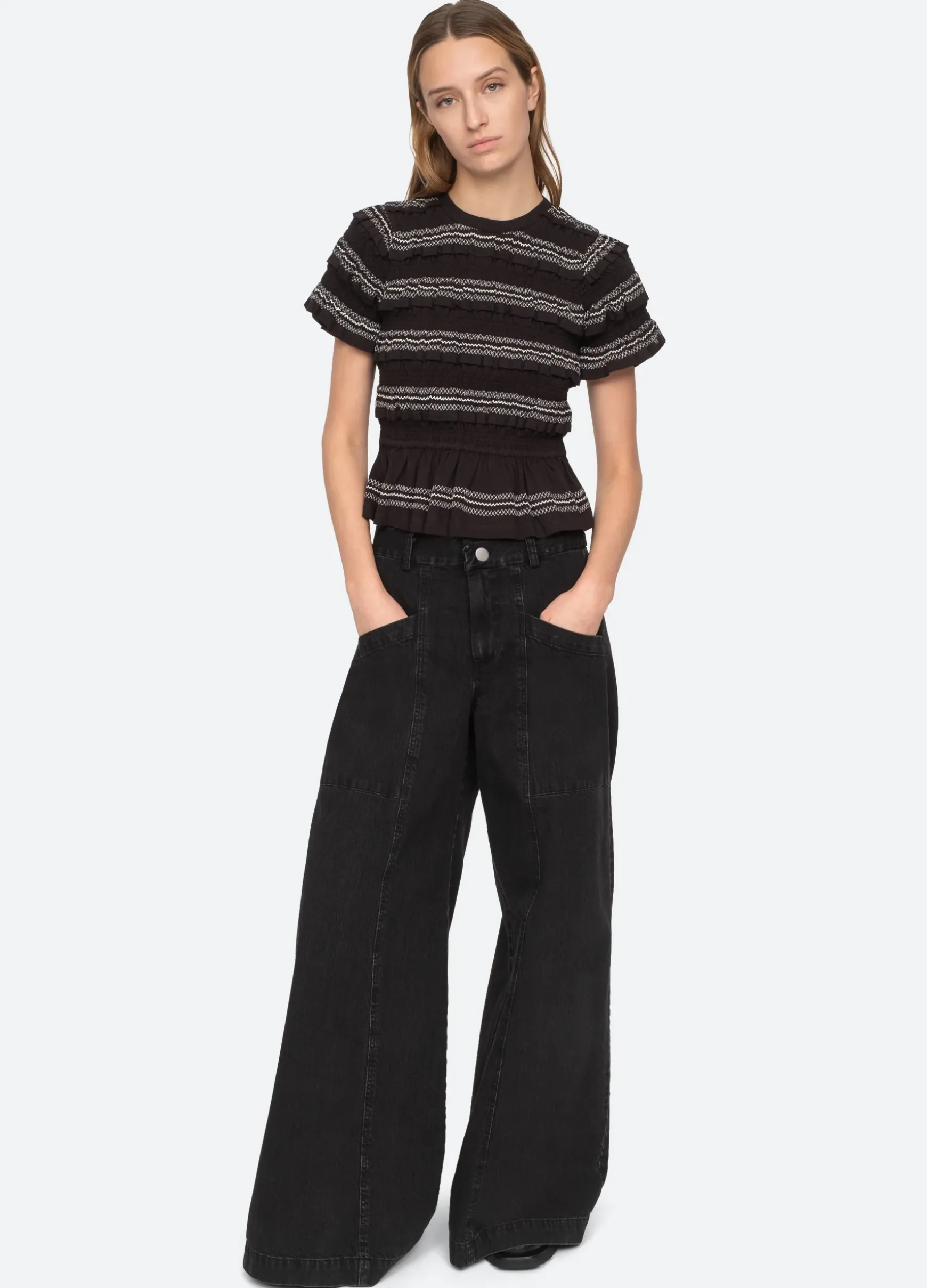 The Mable short sleeve smocked top features ruffle and smocked detailing.