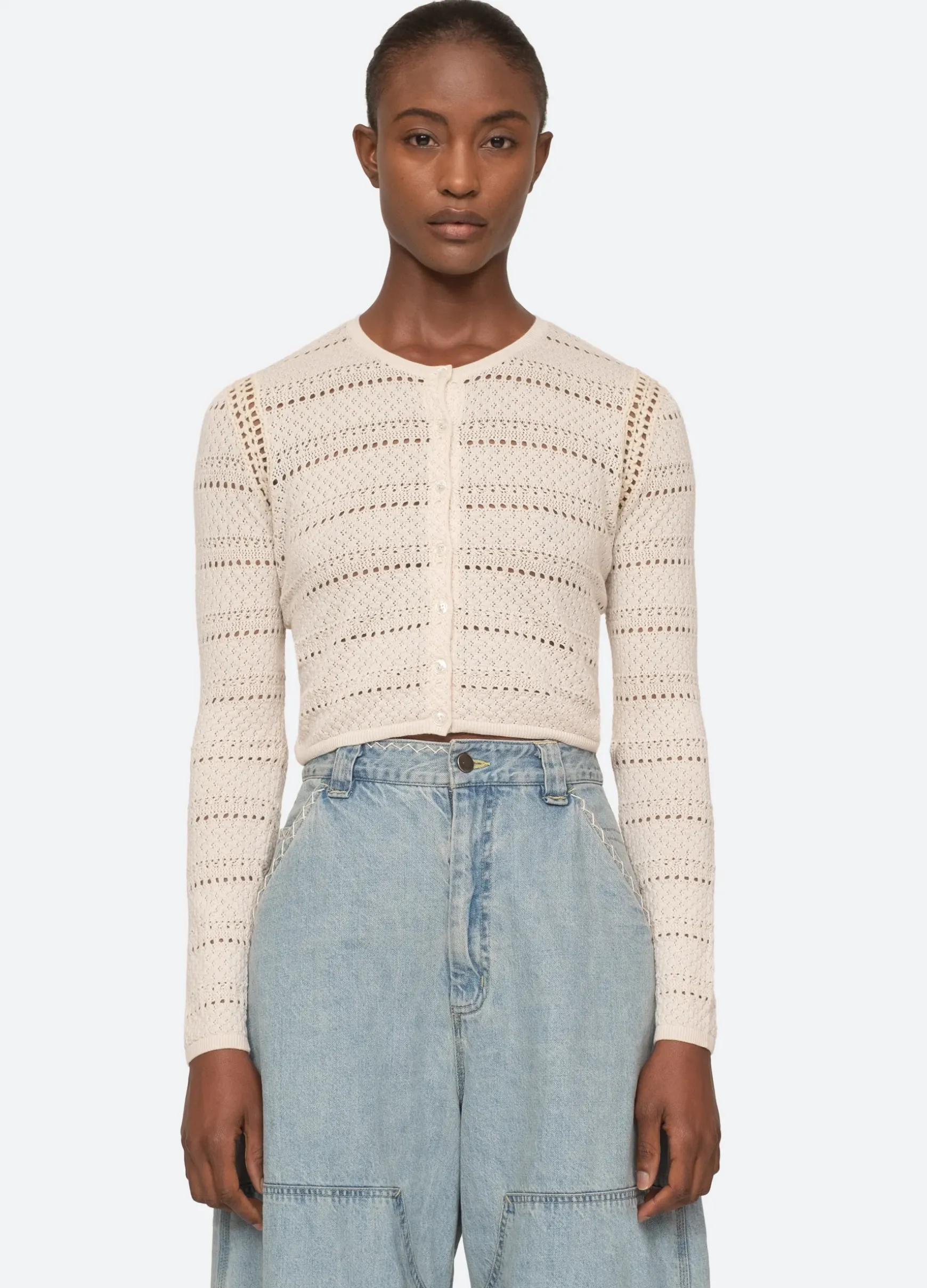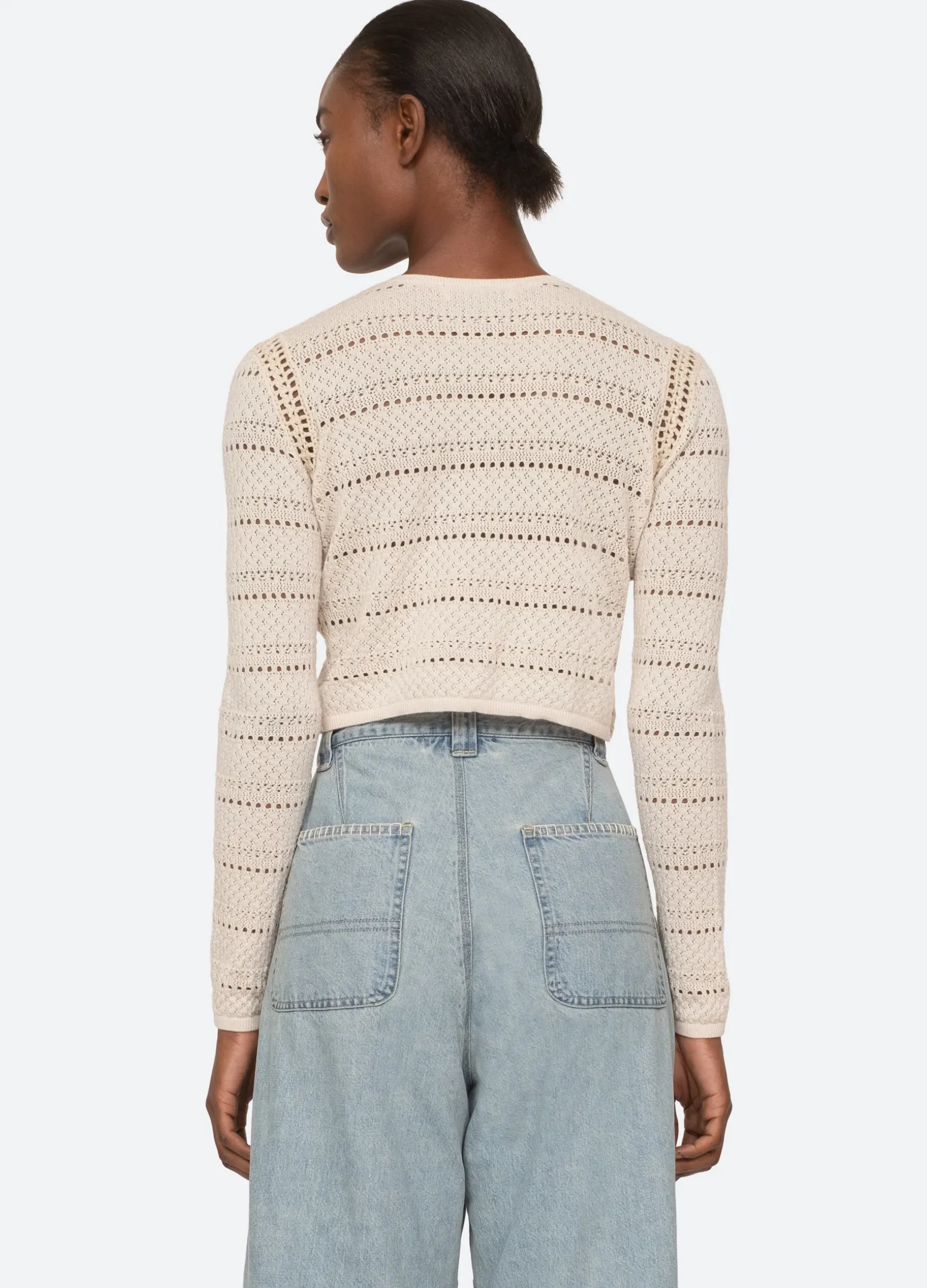 The Syble pointelle cropped cardigan is crafted from merino wool and is a perfect wardrobe staple.