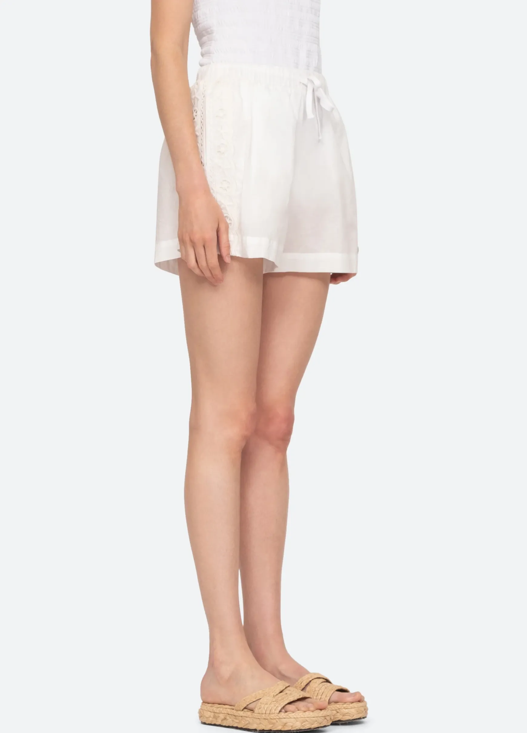 The Arabella embroidered swim coverup shorts feature embroidered trim detailing and an elasticated drawstring waist.