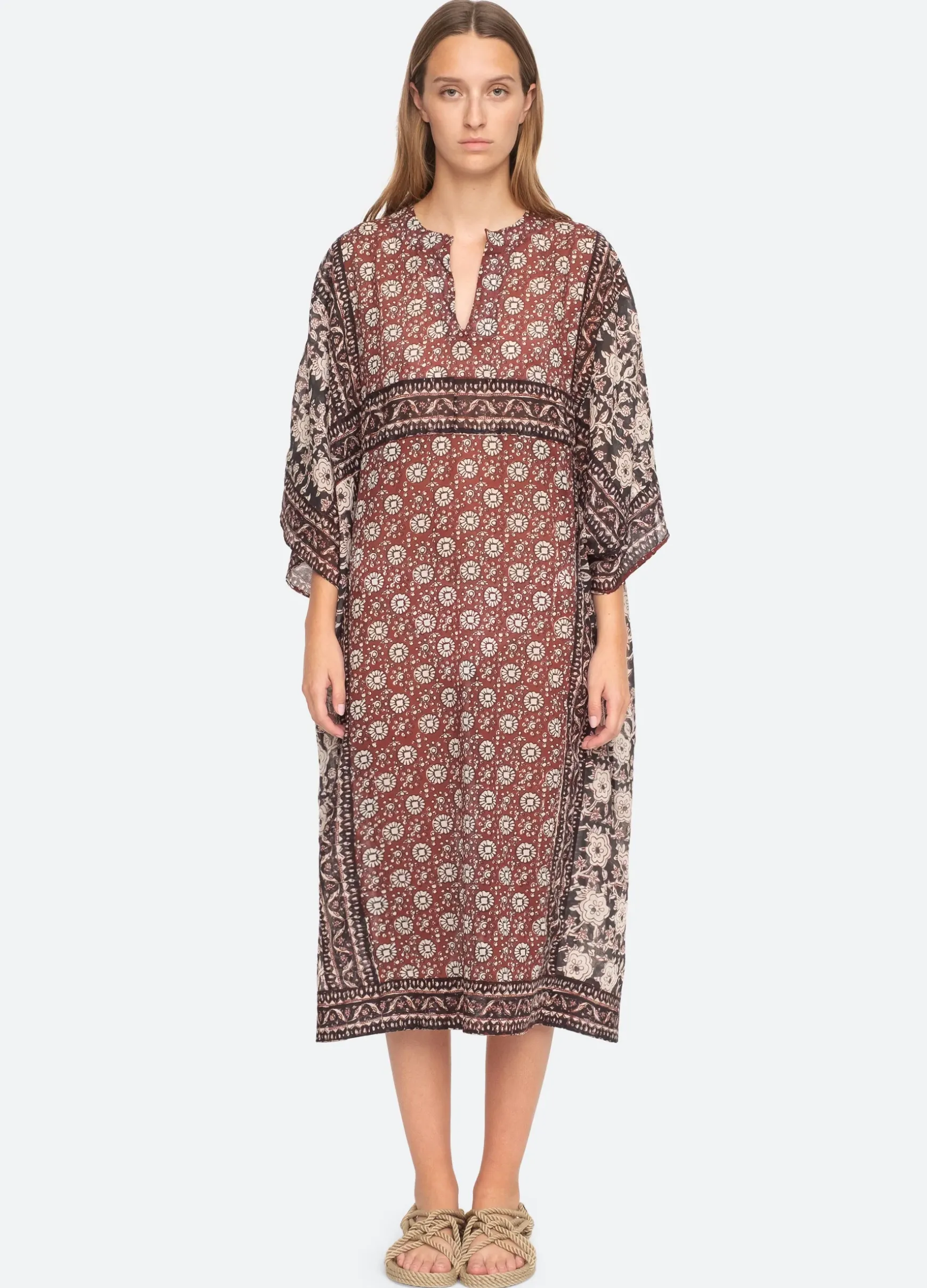 The Danae floral print caftan features a split v-neckline and flowing sleeves. Designed for an easy, relaxed fit.
