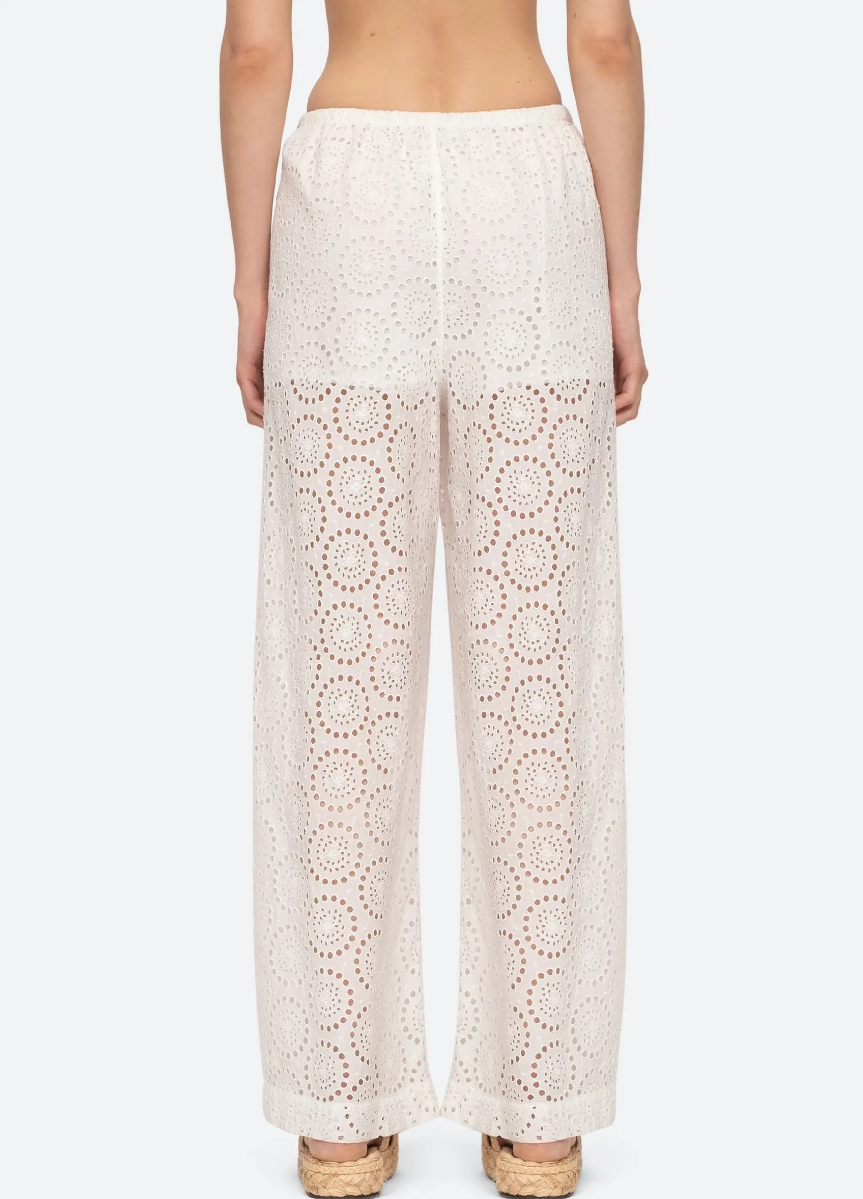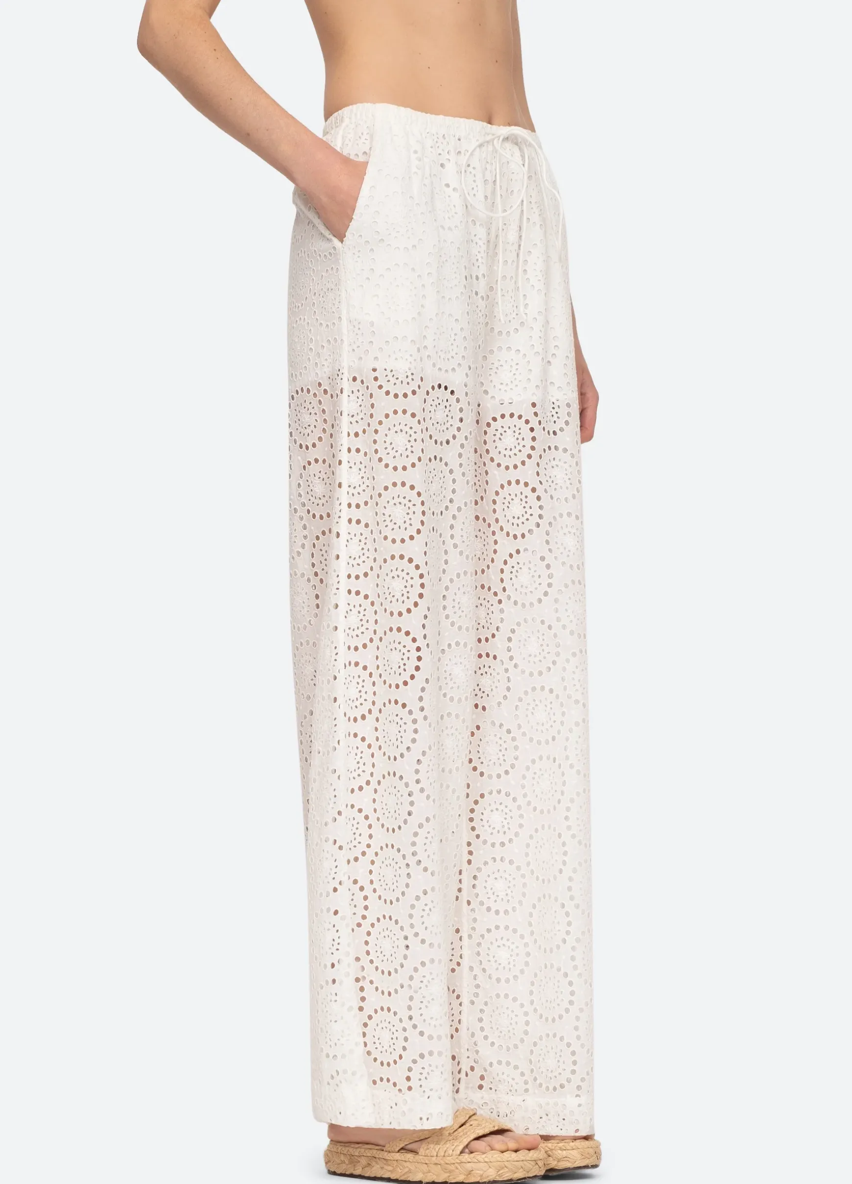 The Maeve eyelet swim coverup drawstring pants feature an elasticized waist and delicate eyelet detailing throughout.