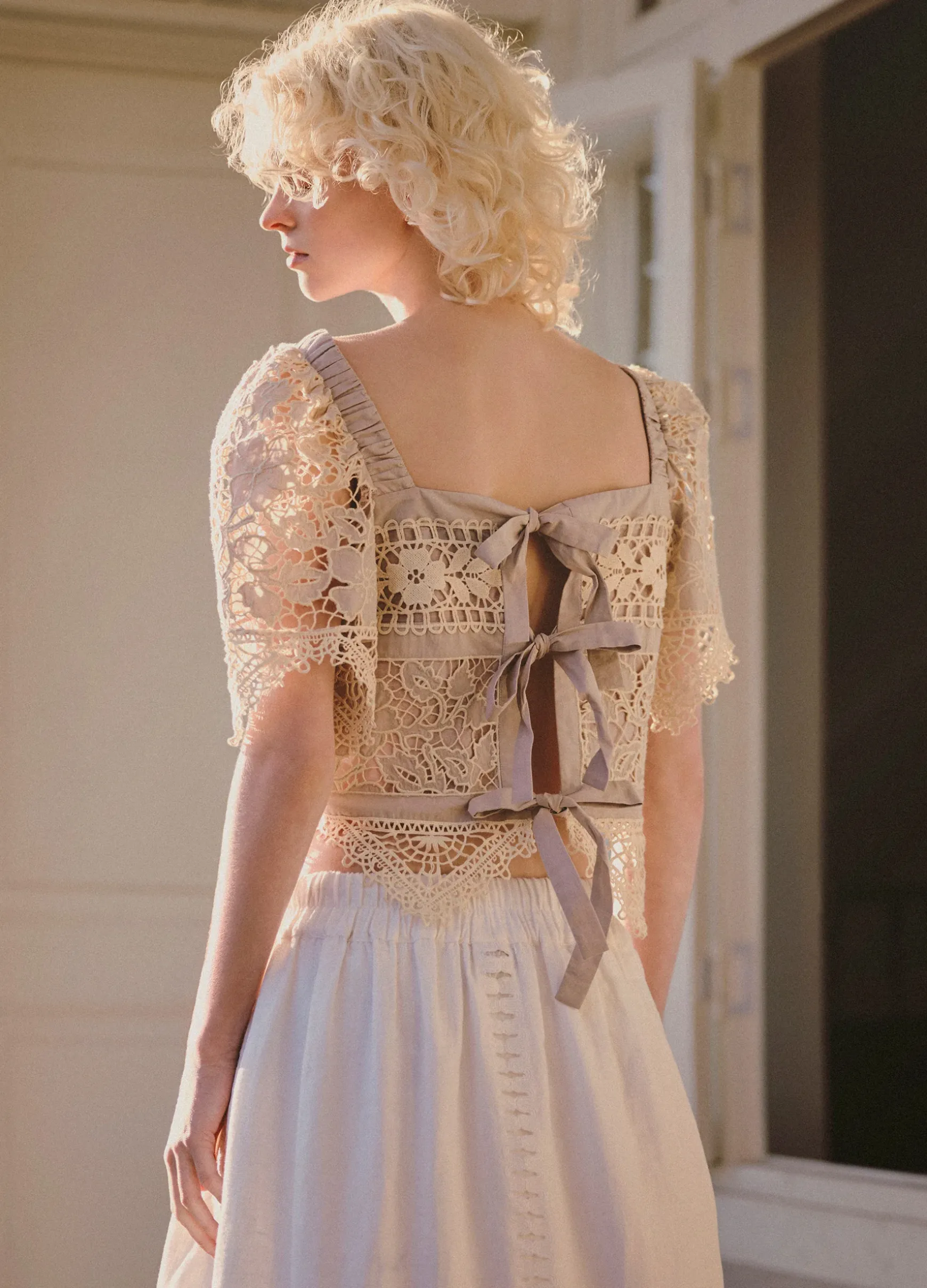 The Joah embroidered lace short sleeve top features delicate lace detailing throughout, square neckline and tie fastening at back. Designed for an easy, relaxed fit.
