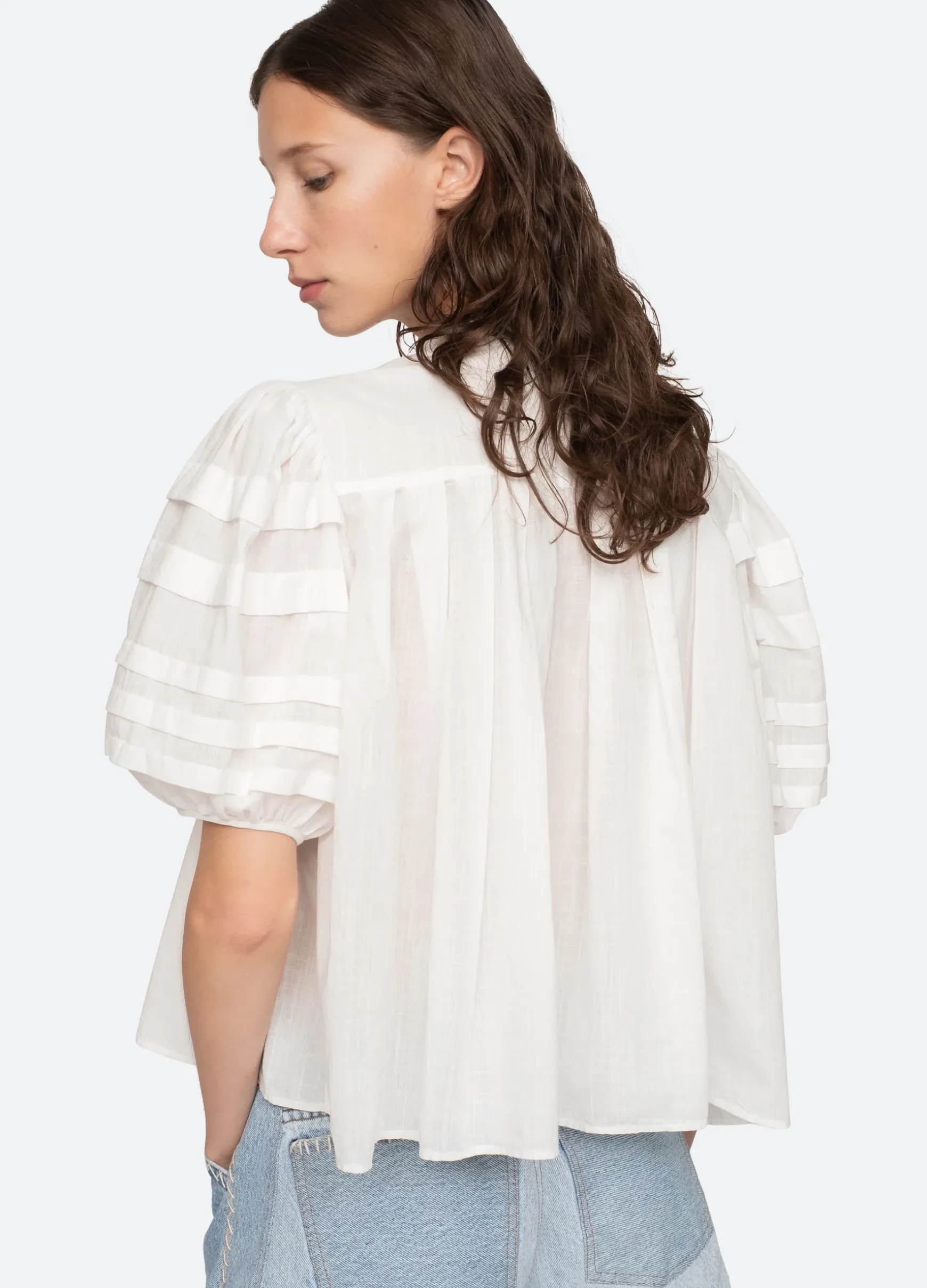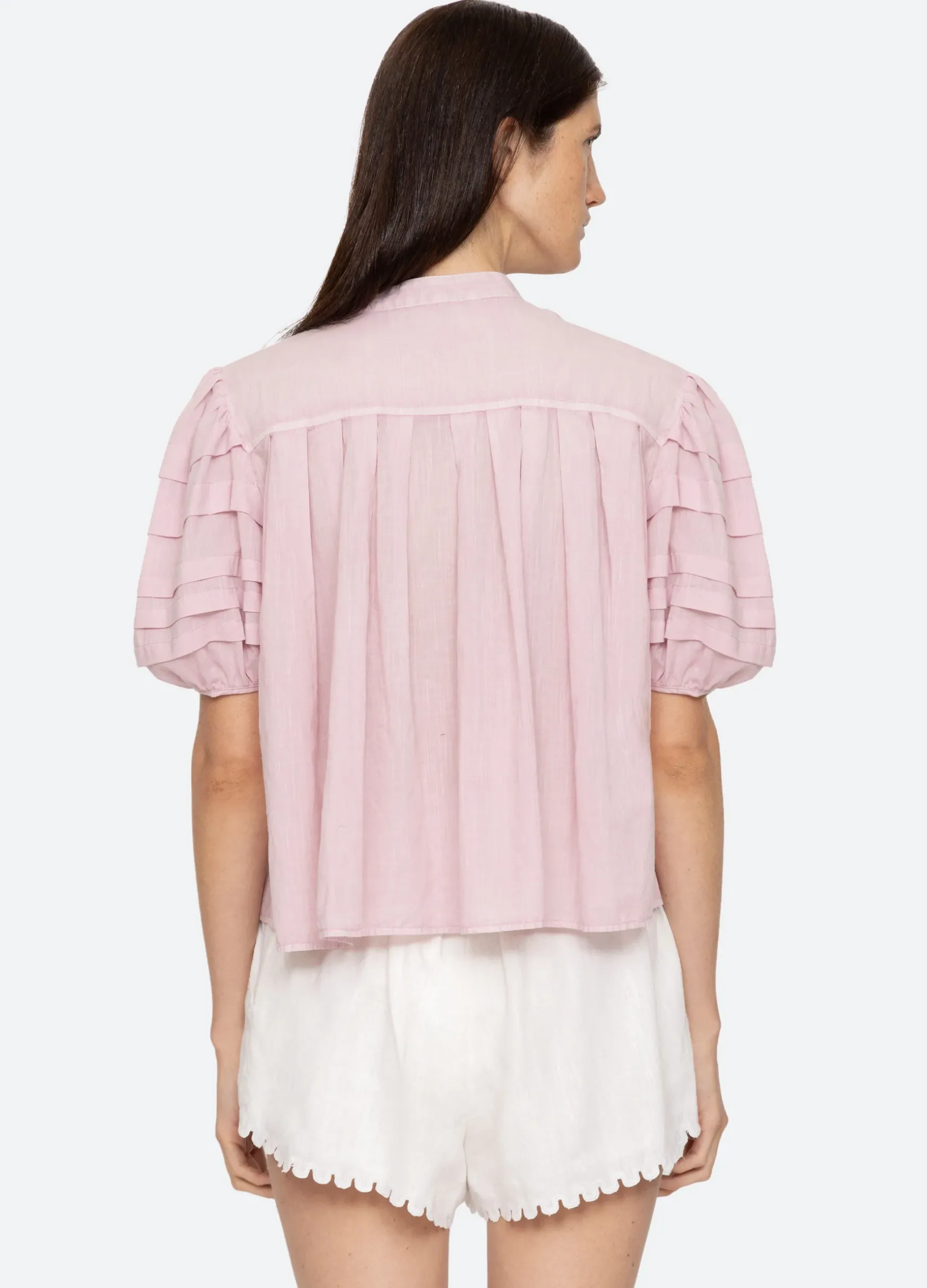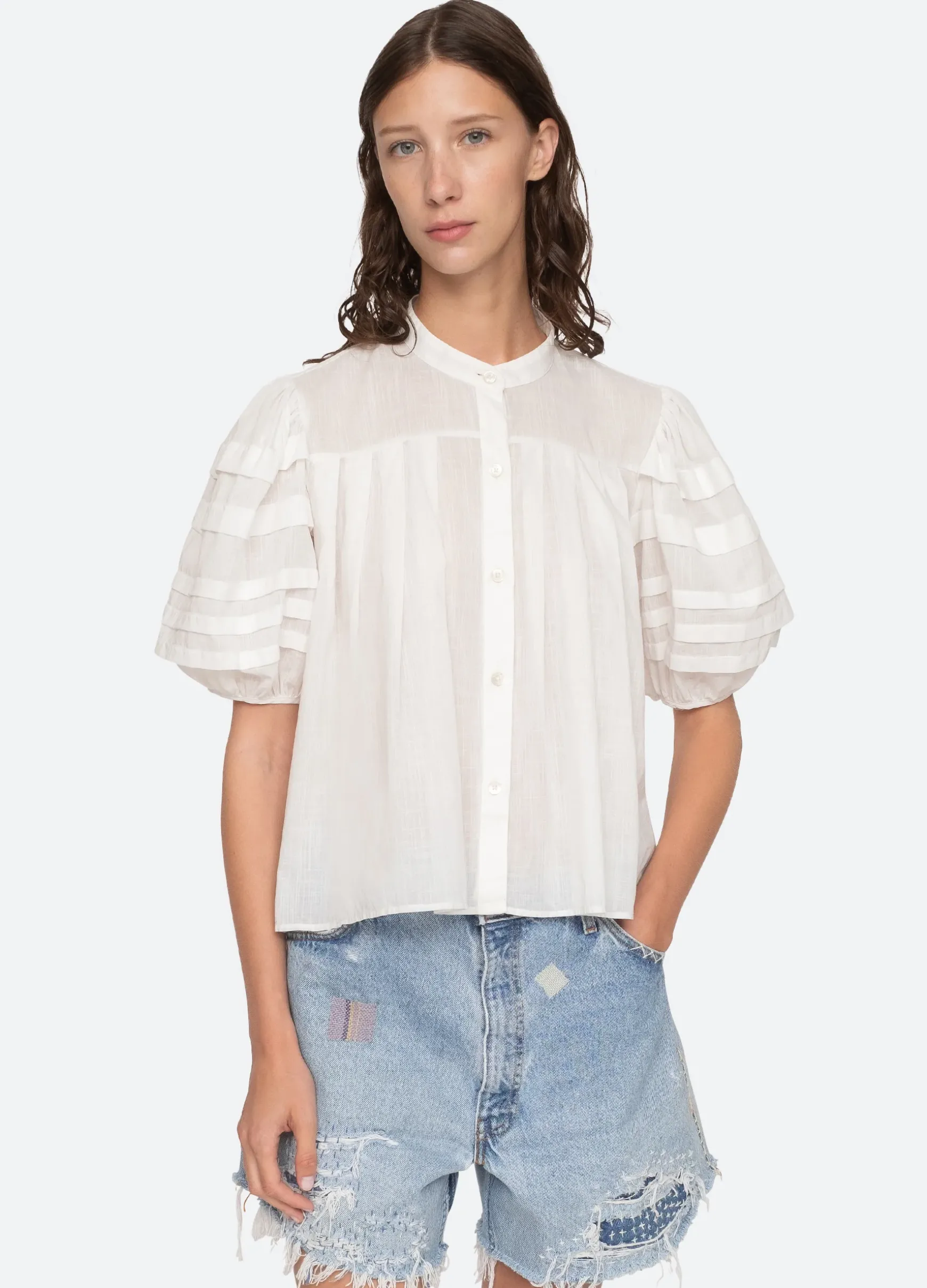The Salome top features puff sleeves with pleated detailing and button front closure. Designed for an easy, relaxed fit.